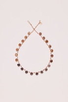Le collier Beachwood en pierre de lune dorée révèle des teintes subtiles de doré, allant du beige clair à des nuances plus chaudes de caramel. Chaque pierre, à la fois douce et lumineuse révèle des éclats dorés et nacrés.