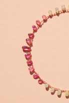 Les pierres, subtilement espacées par trois nœuds délicats, se succèdent harmonieusement sur un cordon soyeux, montage emblématique de la maison IVARENE. Le fermoir en Or 14k gold filled apporte une touche finale d’élégance, scellant ce bijou avec finesse et sécurité.