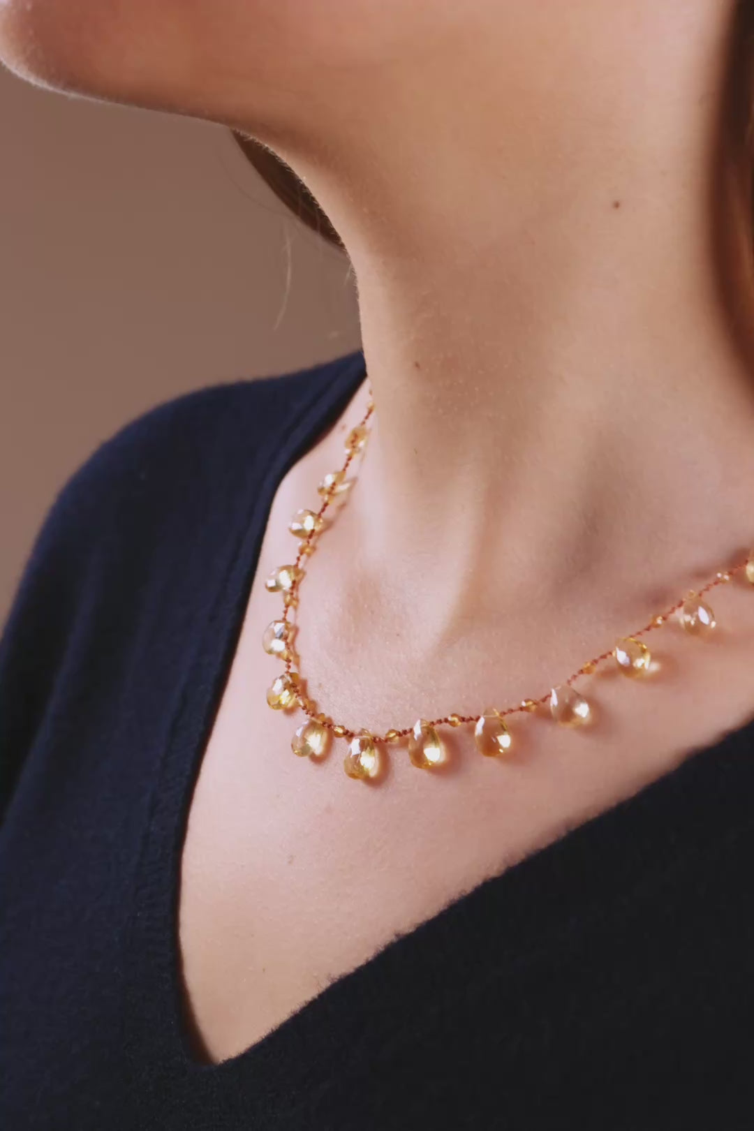 Le collier Mill incarne une chaleur enveloppante avec ses citrines facettées aux teintes dorées rappelant les rayons du soleil. Chaque perle, finement taillée, capte et reflète l’éclat ambiant, offrant une brillance subtile à chaque mouvement. Ce bijou dégage une chaleur réconfortante, apportant une sensation d’optimisme et de joie.