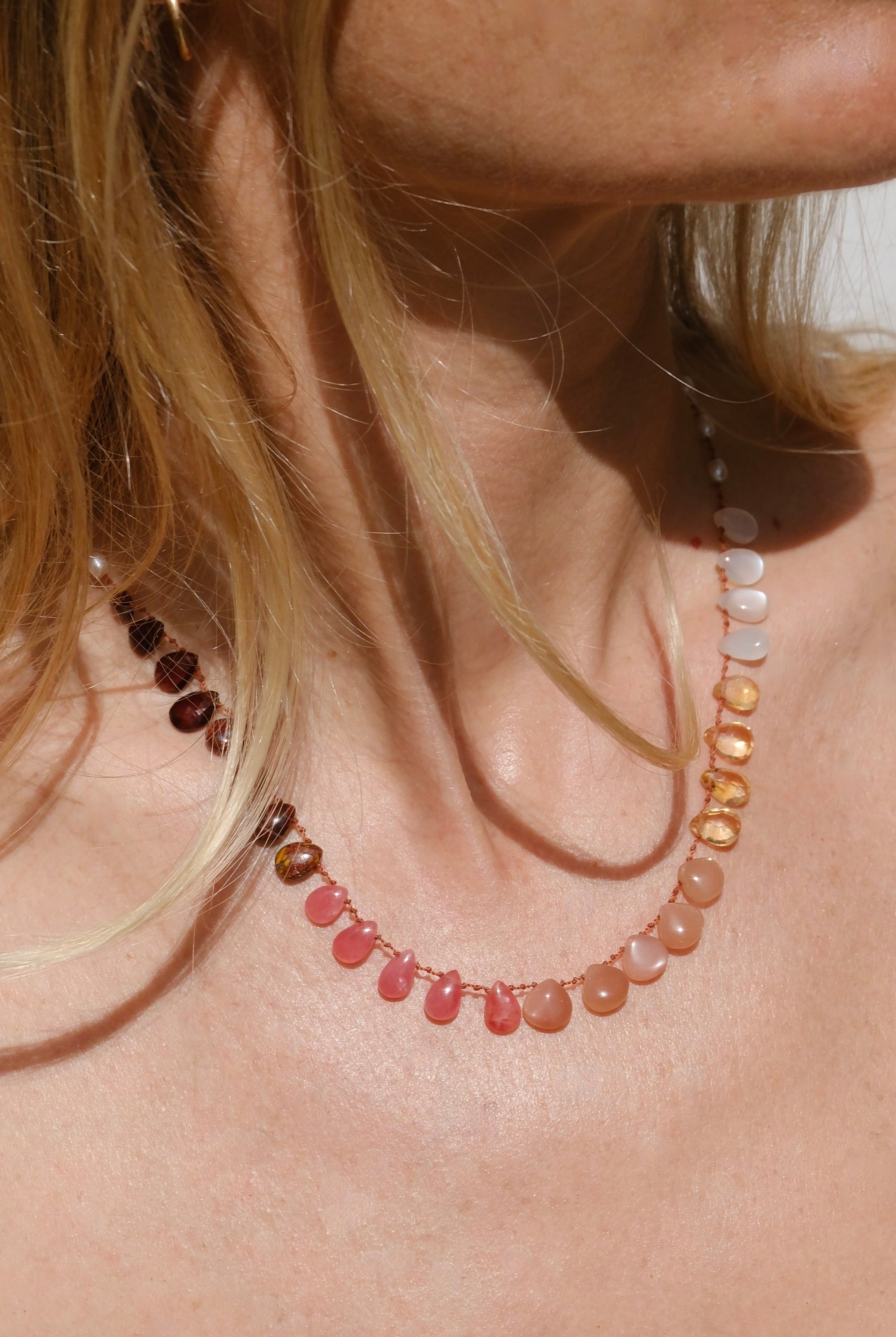 La collection des Permanents réunit nos pierres naturelles les plus régulières, celles que nous pouvons sourcer en continu, sans rupture. Des colliers et bracelets artisanaux, fabriqués en France, où chaque détail compte : la douceur des matières, l’énergie des pierres, la simplicité du geste.