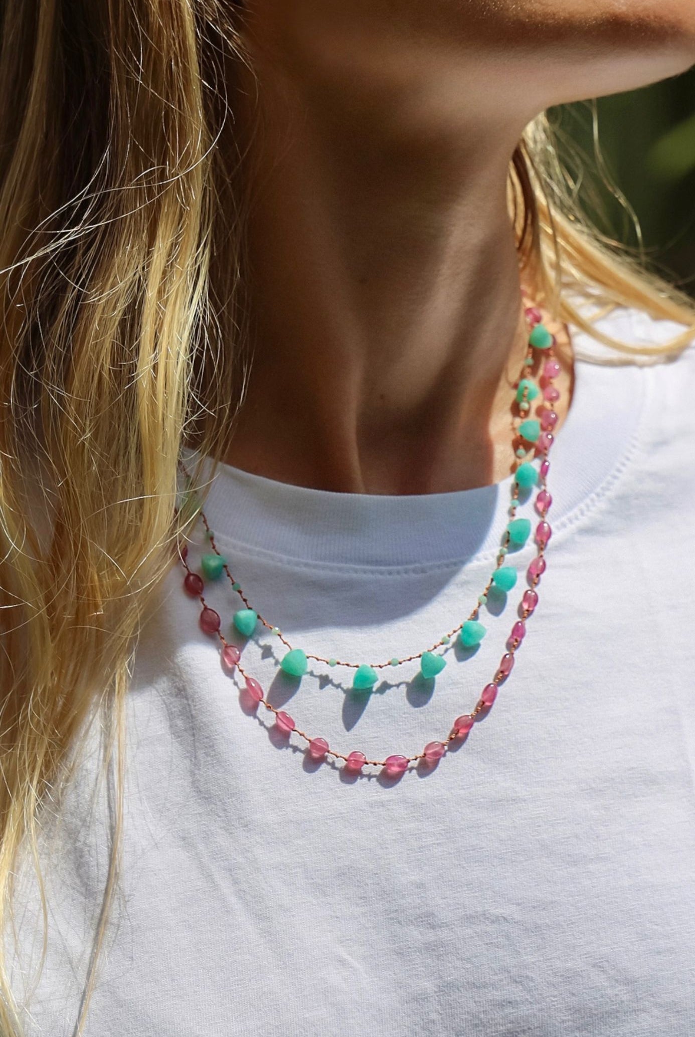 La collection des Permanents réunit nos pierres naturelles les plus régulières, celles que nous pouvons sourcer en continu, sans rupture. Des colliers et bracelets artisanaux, fabriqués en France, où chaque détail compte : la douceur des matières, l’énergie des pierres, la simplicité du geste.