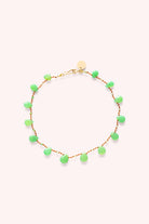 Le bracelet de cheville Evergreen est ajustable grâce aux trois perles de fin que vous glissez dans la boucle en macramé. Ses chrysoprases au vert vif, intense et lumineux, évoquent l'énergie du renouveau et de la vitalité.