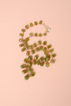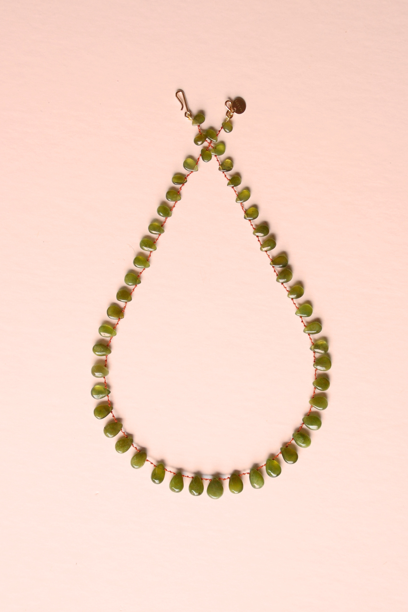 Le collier en Vesuvianite cœur révèle une rareté subtile, chaque pierre lisse semblant murmurer une histoire ancienne. Ses nuances de vert profond rappellent la sérénité de la nature. Symbole de transformation, la vesuvianite invite à la clarté et à l’équilibre intérieur.