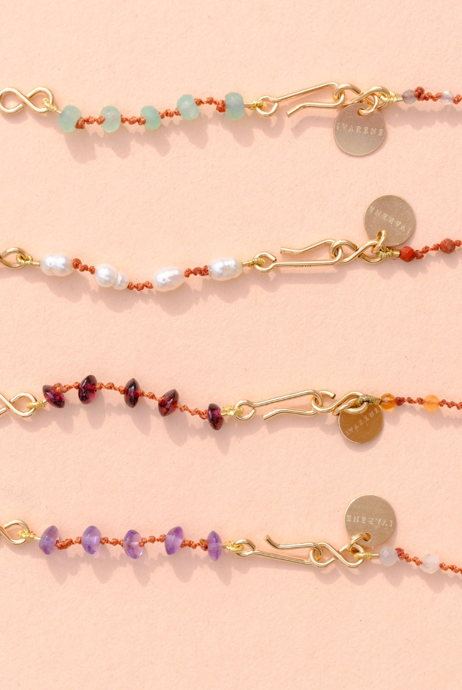 La collection des Permanents réunit nos pierres naturelles les plus régulières, celles que nous pouvons sourcer en continu, sans rupture. Des colliers et bracelets artisanaux, fabriqués en France, où chaque détail compte : la douceur des matières, l’énergie des pierres, la simplicité du geste.