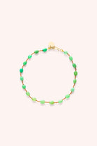 Les pierres, subtilement espacées par trois nœuds délicats, se succèdent harmonieusement sur un cordon soyeux, montage emblématique de la maison IVARENE. Le fermoir en Or 14k gold filled apporte une touche finale d’élégance, scellant ce bijou avec finesse et sécurité.