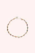 Les pierres, subtilement espacées par trois nœuds délicats, se succèdent harmonieusement sur un cordon soyeux, montage emblématique de la maison IVARENE. Le fermoir en Or 14k gold filled apporte une touche finale d’élégance, scellant ce bijou avec finesse et sécurité.