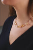 Le collier 'Harrison' sublime de généreuses pépites, qui se distinguent par leur taille imposante et leur forme irrégulière, tout en captant la lumière avec naturel. Le montage espacé confère au bijou une légèreté visuelle et une fluidité gracieuse, permettant à chaque pierre de briller de manière individuelle. Ce jeu de contraste entre la robustesse des pierres et la délicatesse du montage crée une harmonie parfaite, offrant au collier une allure à la fois puissante et subtile. Le fermoir en 14K gold filled, discret et raffiné, termine cette pièce unique. Idéal pour celles qui cherchent une pièce à la fois audacieuse et élégante.