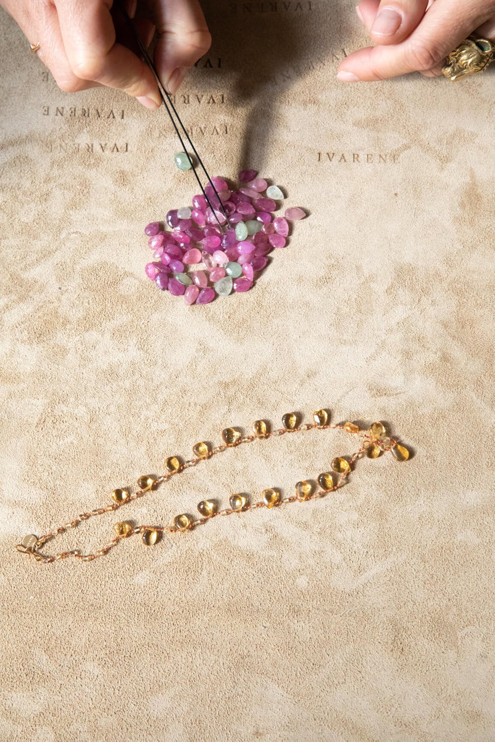 Ivarene s'engage avec passion dans l'élaboration de bijoux qui racontent une histoire, des pièces pleines de joie et de magie. Chaque pièce est le fruit d'un processus méticuleux et passionné, où les trésors de la nature sont soigneusement sélectionnés et transformés en bijoux raffinés. Nos artisans, véritables magiciens du détail, fusionnent habilement les techniques traditionnelles et des matériaux d'exception.
