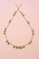 Dans cette version, les briolettes de vésuvianite dévoilent des nuances de vert kaki et doré, pleines de douceur et de lumière naturelle.
